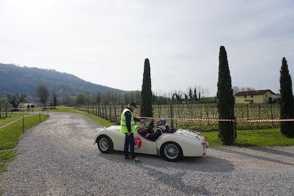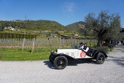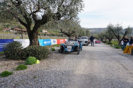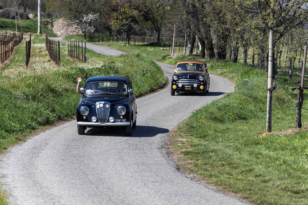 Intervallato dalla suggestiva sosta pranzo allo Chalet San Martino, nuova e affascinante location sul lungolago di Paratico, il nuovo tracciato di gara predisposto dagli organizzatori prevedeva tante prove nei primi chilometri di gara, con un ritmo incalzante ma calibrato al meglio in considerazione delle tante vetture anteguerra presenti in partenza (ben 40). Nel primo blocco di 24 prove prima del Controllo Timbro alla Filtes International di Capriolo, Federico e Alberto Riboldi prendevano subito il comando della gara con 49 penalità tenendo a distanza Guido Barcella e Ombretta Ghidotti su Fiat 508 C del 1938 (59), seguiti da Aliverti-Cadei (Fiat 508 C, 1937) con un parziale di 61, Seneci-Russo su MG Midget Mk I del1961 con 66 penalità, Bellini-Tiberti che seguivano a 69, Nicola Barcella e Doriano Vavassori (Fiat 508 C, 1938) con 75, Salvinelli-Salvinelli su Fiat 508 C del 1938 (76), per chiudere la top ten provvisoria con i Turelli (80), Miatto-Borchia (Bugatti Type 37, 1929) con 85 e Sala-Cioffi su Lancia Aprila del 1937 fermi a 86.