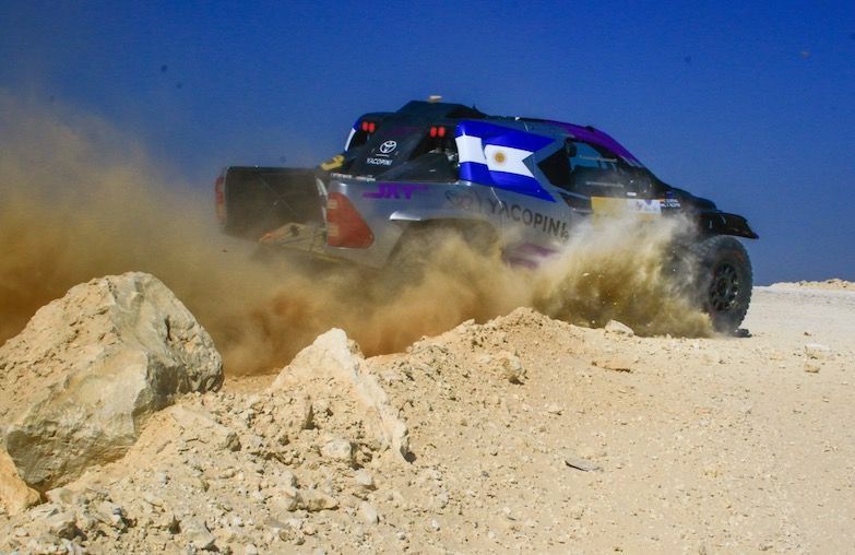 Dopodichè tutti gli equipaggi si sono ritrovati sul palco partenza. Due le tappe vere e proprie, la prima con un percorso complessivo di 350 km, tutto realizzato nella parte nord del Paese con partenza da Al Khor e giù fino a sud di Doha toccando la parte ovest del paese fino a Zekreet. Il secondo giorno, nuovamente si parte dalle pietre dell’ovest per giungere al conosciutissimo deserto dello Sealine a sud, quasi al confine con l’Arabia Saudita. Terreno molto più vario e navigazione difficile. Ma un paesaggio mozzafiato che scalda il cuore, e non solo dato le temperature “invernali” che non sono mai scese sotto i 32 gradi durante il giorno.