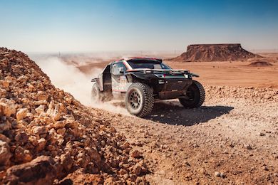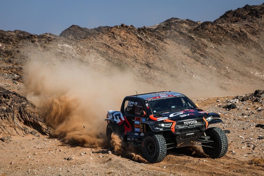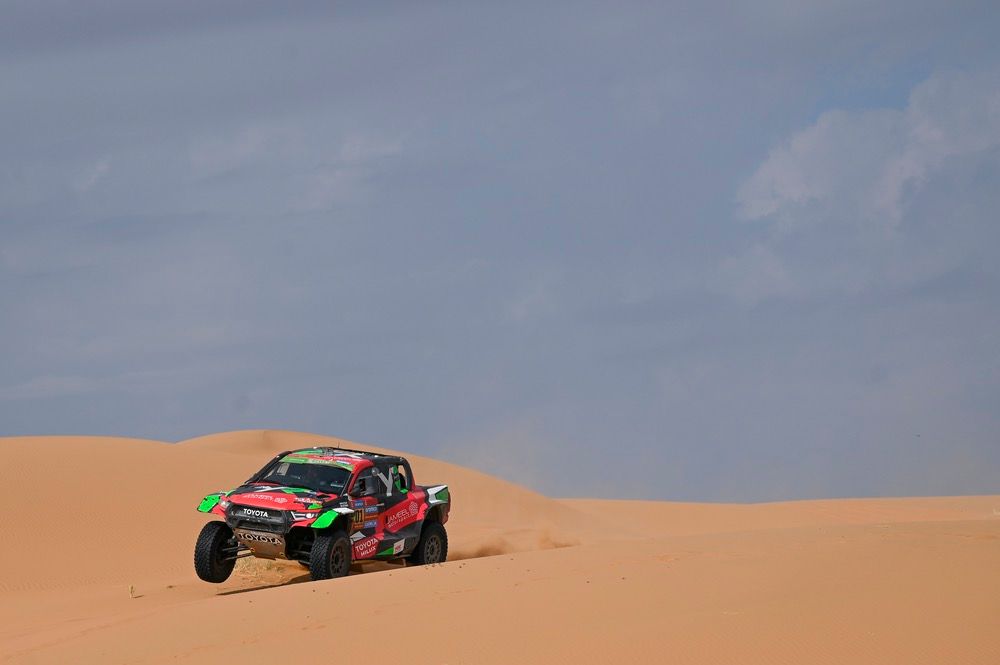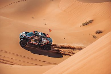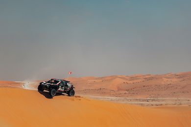 I due piloti hanno perso meno di mezz’ora grazie al supporto dei loro compagni di squadra e alle innovative soluzioni della Sandrider destinate a facilitare gli interventi meccanici, come le zone magnetiche integrate nella carrozzeria. Tornati all’attacco, sono stati i più veloci prima della giornata di riposo a Hail, ma la mancanza della ruota di scorta a causa del cedimento del supporto danneggiato ha comportato una penalità di dieci minuti che li ha privati del primo posto per un solo secondo.