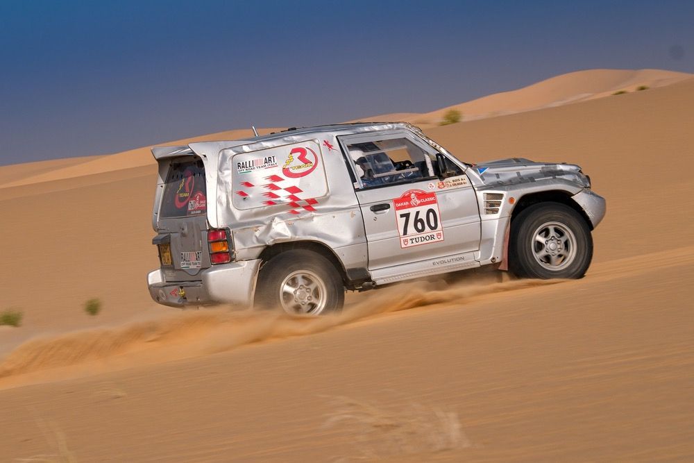 La Dakar Classic prevede anche una sfida di abilità di guida, che consiste nell’affrontare il passaggio tra le dune con la traettoria più efficace.