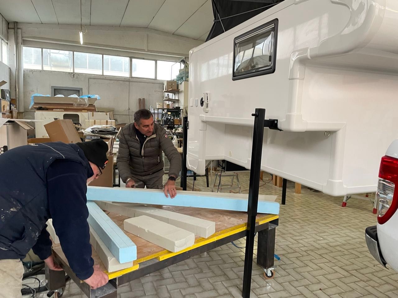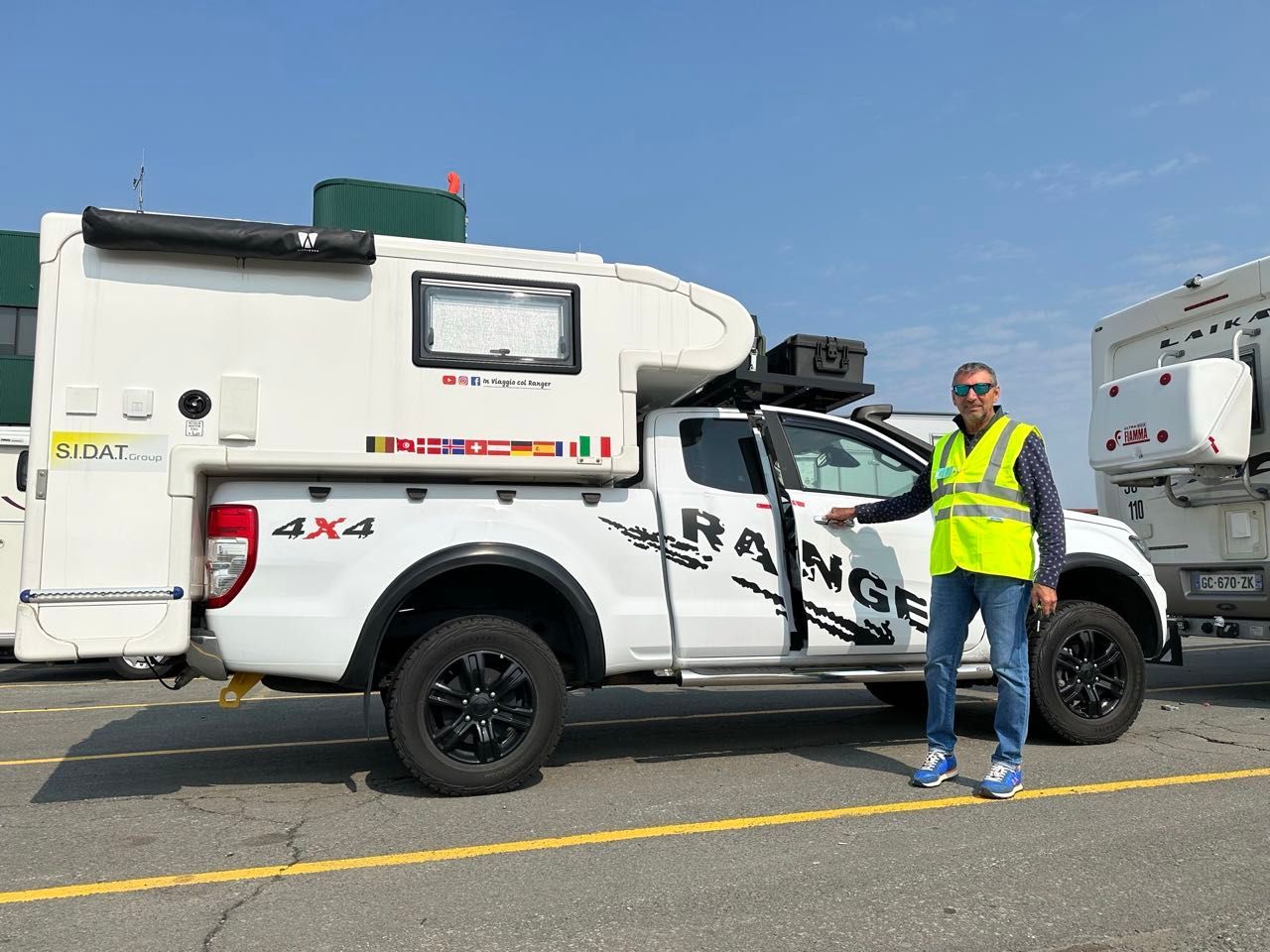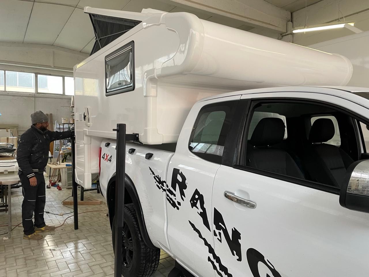 Il nostro mezzo è un pick-up Ford Ranger, acquistato in Italia nel 2021, con una cellula abitativa costruita da Modulidea (un costruttore che ha sede a Fidenza), realizzata su nostro disegno e completamente attrezzata per essere un camper in miniatura e permetterci di vivere in qualsiasi condizione climatica.