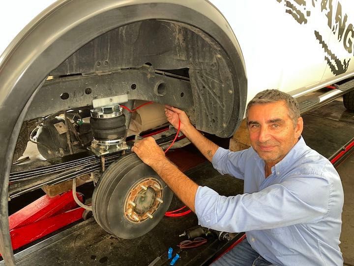 Per sostenere il peso della cellula di circa 450 kg a vuoto, che è appoggiata sul cassone del pick-up, abbiamo rinforzato le balestre, installato i soffietti e sostituito gli ammortizzatori posteriori, con ammortizzatori a doppio effetto.