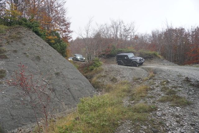 Vedendoci soddisfatti e felici di non rimanere impantanati, notiamo che altre vetture si sono messe in movimento seguendo le nostre tracce, in questo caso il diverso disegno degli pneumatici ha determinato il successo nelle salite creando limiti in alcuni passaggi normalmente percorribili senza troppa fatica.