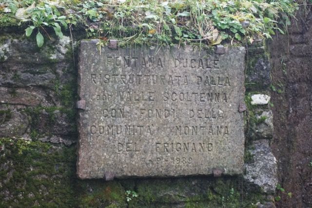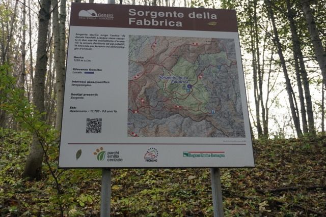 Proseguiamo lentamente salutando alcuni escursionisti e cercatori di funghi che frequentano il bosco a bordo strada, nel trasferimento qualche cerbiatto ci attraversa la strada saltando a destra e sinistra, per fortuna riusciamo ad evitarlo, fiancheggiamo alcuni edifici rurali dell’epoca, alcuni abbandonati alcuni ristrutturati recentemente, notiamo che l’abitato di Fabbrica è stato riportato agli antichi splendori, nei pressi della fontana ducale e del curioso lavatoio del 1752 ottenuto solo da un unico masso, altro punto strategico fornito di cartelli ed indicazioni sul tracciato e il progettista della strada.