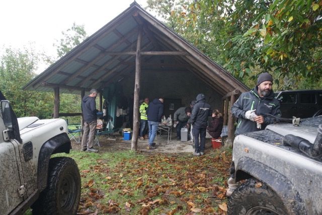 Si aprono i bauli e spunta una abbondanza di vivande per un esercito, ogni partecipate ha portato materiale mangereccio per se e per socializzare con assaggi vari, salato e dolce si alternano con i salami con aglio o senza, spunta anche un fornello a gas per cuocere le salamelle, qualche bottiglia di quello buono, e poi un caffe in questo bellissimo posto, tutto ciò a confermare che la pratica più bella del fuoristrada serve a socializzare a tavola.