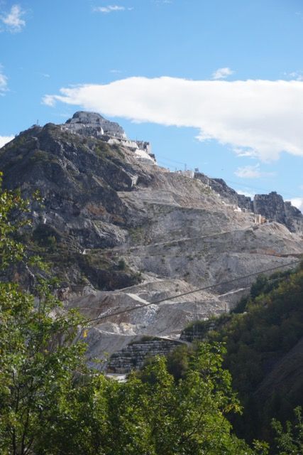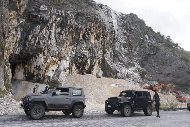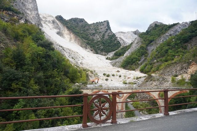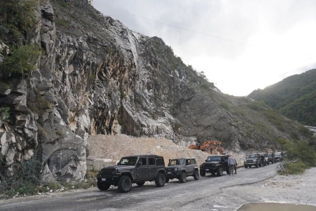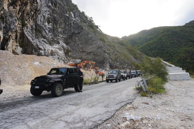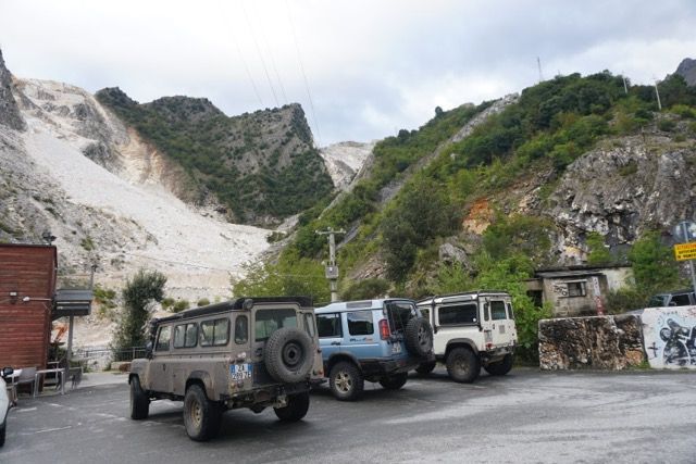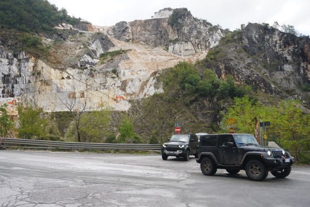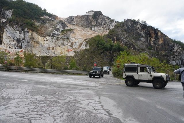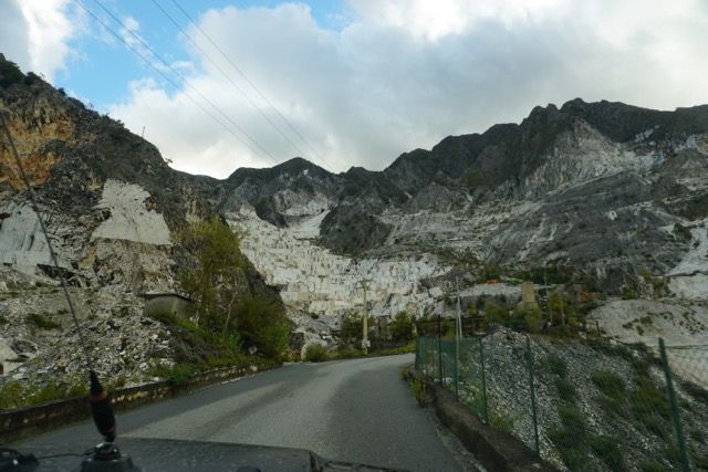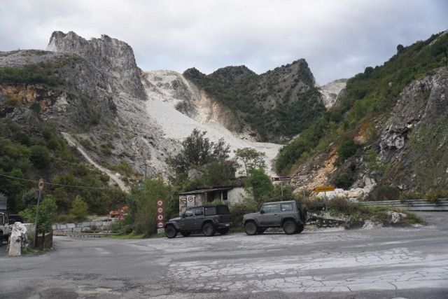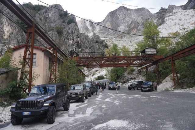 La domenica mattina partenza di buon ora per evitare il traffico, ci dirigiamo verso le zona delle cave, passato Bedizzano ci dirigiamo verso Colonnata per deviare verso le gallerie della vecchia ferrovia marmifera, ora a senso unico, seguiamo il fianco della montagna e ci immergiamo nei panorami delle cave, raggiungiamo i Ponti di Vara, siamo nel bacino di Fantaiscritti, piccola sosta nel piazzale per ammirare gli scavi delle cave storiche verso il basso e i ravaneti verso l’alto.