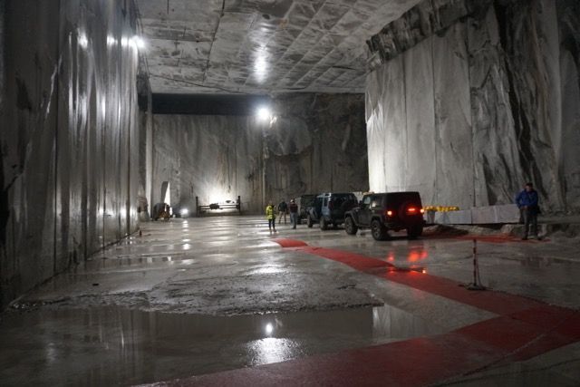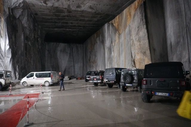 Lo stanzone è enorme a le nostre auto sembrano dei modellini, la temperatura si mantiene costante, visitiamo i santuarietti votivi per i cavatori, ascoltiamo il racconto della Francesca sui ritmi di lavoro e la qualità del marmo “bianco di Carrara”, che sembra il tipo migliore e viene spedito in tutto il mondo per fare statue e obelischi, è anche la cava dove si riesce a cavare i massi più grandi.