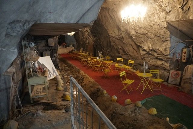 Nella cava viene anche portato a maturazione un vino pregiato, prodotto con le uve rasccolte nelle montagne circostanti, dopo avere ascoltato la storia dei cavatori e ammirato gli attrezzi che vengono utilizzati per tagliare le rocce e i sistemi di trasporto, ci dirigiamo all’uscita di Fantaiscritti dove troviamo i pulmini dei turisti pronti per iniziare la loro escursione, procediamo attravversando la prossima montagna con la galleria più lunga, luogo dove si provava la sensazione del buoi totale visto la sua curvatura che nascondeva l’entrata e l’uscita, ora illuminata per motivi di sicurezza.