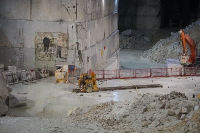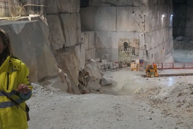 Ripartiamo e ci dirigiamo nel bacino di Torano dove partirà la nostra escursione guidata all’interno della montagna, guidati dalla Francescà cavatrice di famiglia, che ci accultura ed emoziona con i racconti della storia della cave, dopo un primo discorso della sicurezza, arriviamo nell0 ”stanzone” nel cuore della montagna esattamente a quattrocento metri dall’ingresso, quattrocento metri dalla uscita dall’altro lato della montagna, quattrocento metri dalla cima del monte.