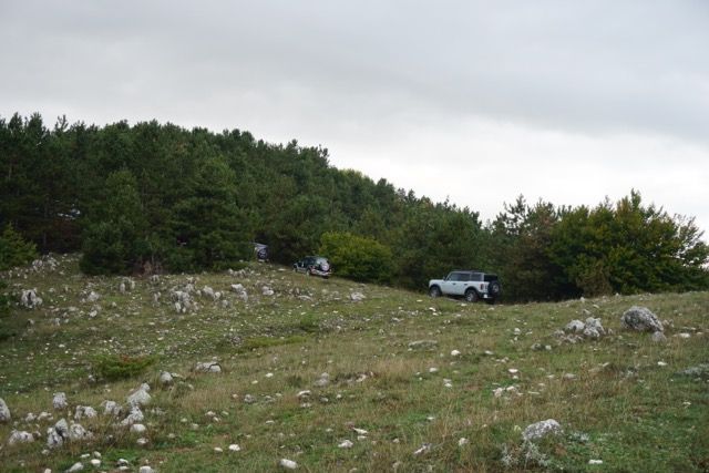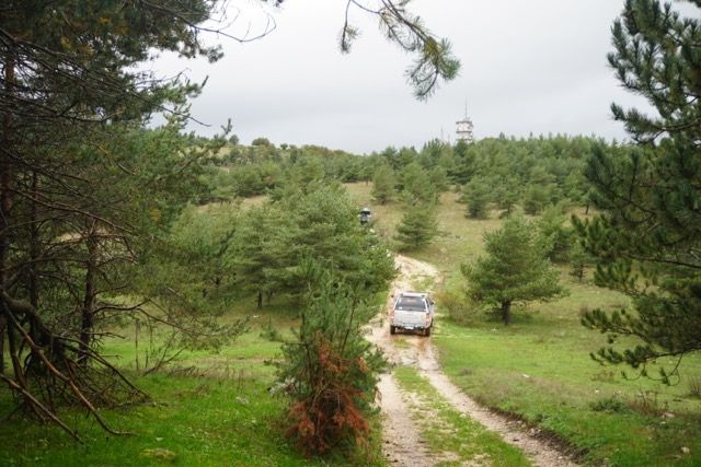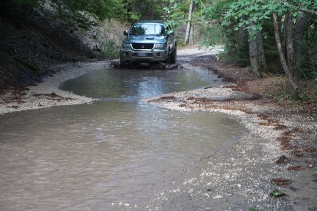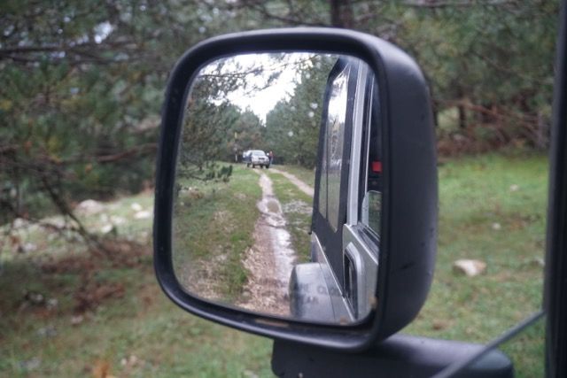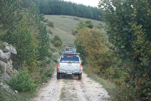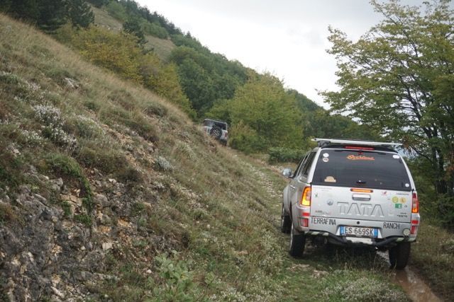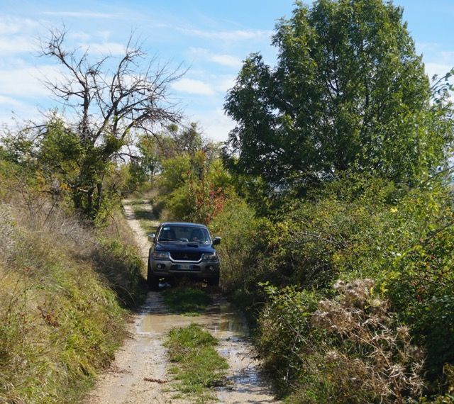 Piccolo briefing e alle 09 tutti in auto per la partenza, una leggera pioggerellina ci accompagna per i primi km trasformandosi in pioggia vera dopo qualche Km e in un deciso acquazzone quando abbiamo raggiunto il crinale, per fortuna il fondo delle strade in questa zona è di sasso, ma qualche immancabile slittamento rende più impegnativa la guida, visto che non tutte le vetture erano equipaggiate con gomme da off road.