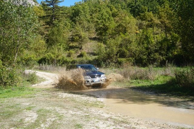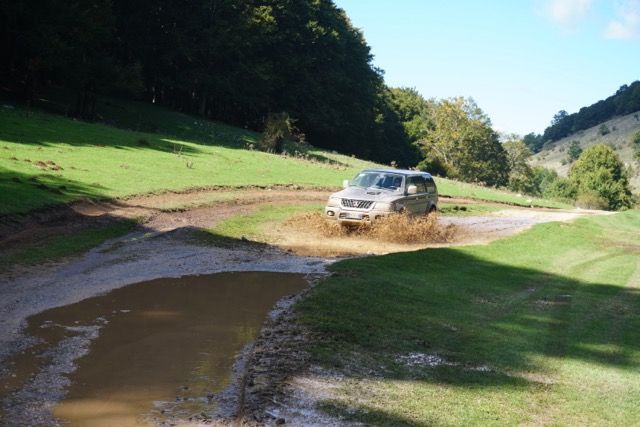 I panorami sono sempre vari, scendendo di quota attraversiamo qualche boschetto dove in contriamo una natura rigogliosa, fin troppo per le carrozzerie ma niente di grosso, nei pianori il recente temporale ha lasciato abbondanza di acqua nelle buche, che rendono emozionante l’attraversamento in velocità coprendo con gli schizzi tutta la macchina.