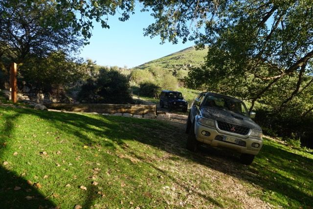 Arriviamo all’aera decisa per il pic nic con il sole che ci riscalda, una bella radura a valle di un abbeveratoio dopo avere percorso una discesa con dei bei solchi profondi formati dall’acqua piovana, l’assistenza di Renzo si è dimostrata fondamentale per i neofiti alla guida, e la sorveglianza di Matteo ai miei giochi di attraversamento solchi.