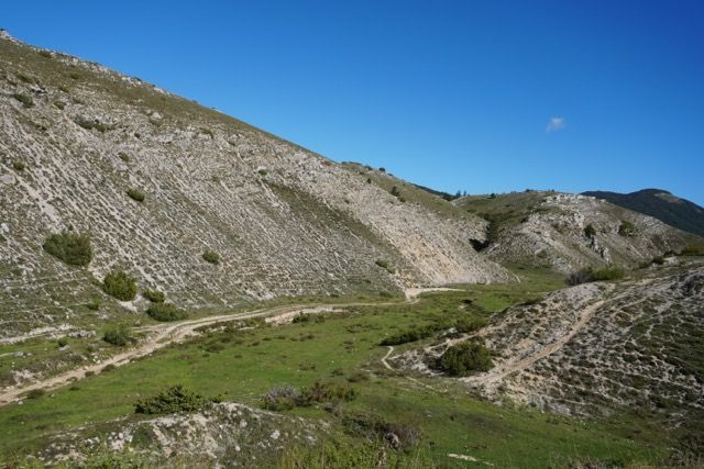 Altri panorami ci aspettano, sul tracciato incontriamo altri veicoli di cacciatori o fungaioli parcheggiati qui e là, in un boschetto di faggete qualche escursionista che ci salutano sorridendo, di nuovo salite discese e il gradito profumo delle erbe di montagna nei versanti più alti, altri pascoli affollati sui piani carsicie raggiungiamo l’antico lago del Fucino ora piana del Fucino, altri scorci di paesi in lontananza ci fanno segni di civiltà con testimonianze storico artistiche rilevanti.