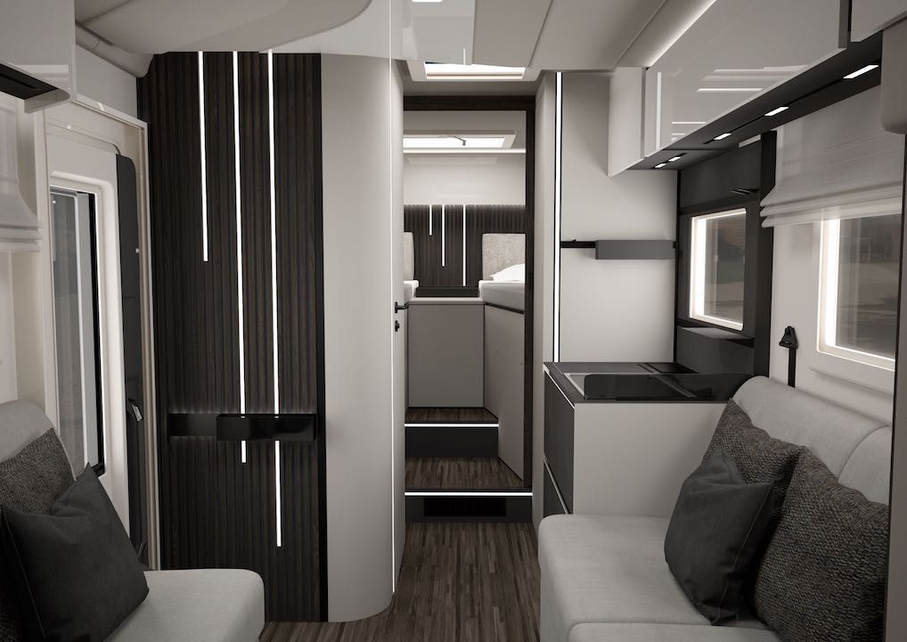 Niesmann+Bischoff prosegue l’ampliamento della gamma: arriva l’Arto 84, un tandem a tre assi lungo 8,45 metri, che offre un bagno spazioso con grande libertà di movimento. Il bagno offre grande flessibilità: una doccia ampia con soffione a pioggia e porta saloon a tutta altezza in vero vetro da un lato, e dall’altro una zona toilette con lavabo che può essere chiusa separatamente per la massima privacy. Chiudendo la porta scorrevole verso la zona notte e la porta verso la cucina, si crea una vera area wellness. Novità anche in cucina, oltre al piano cottura ibrido con un piano a induzione e due fuochi a gas, la cucina può essere dotata, su richiesta, di una cappa aspirante elettrica a scomparsa, di un forno a microonde, di un forno con funzione grill e di lavastoviglie. Una colonna con ripiani integrati offre spazio per spezie e aromi.