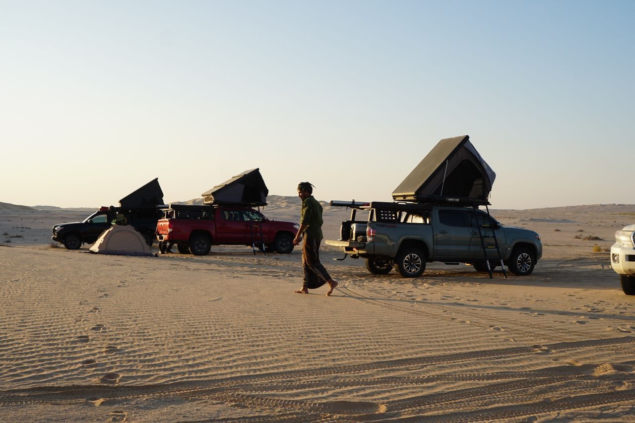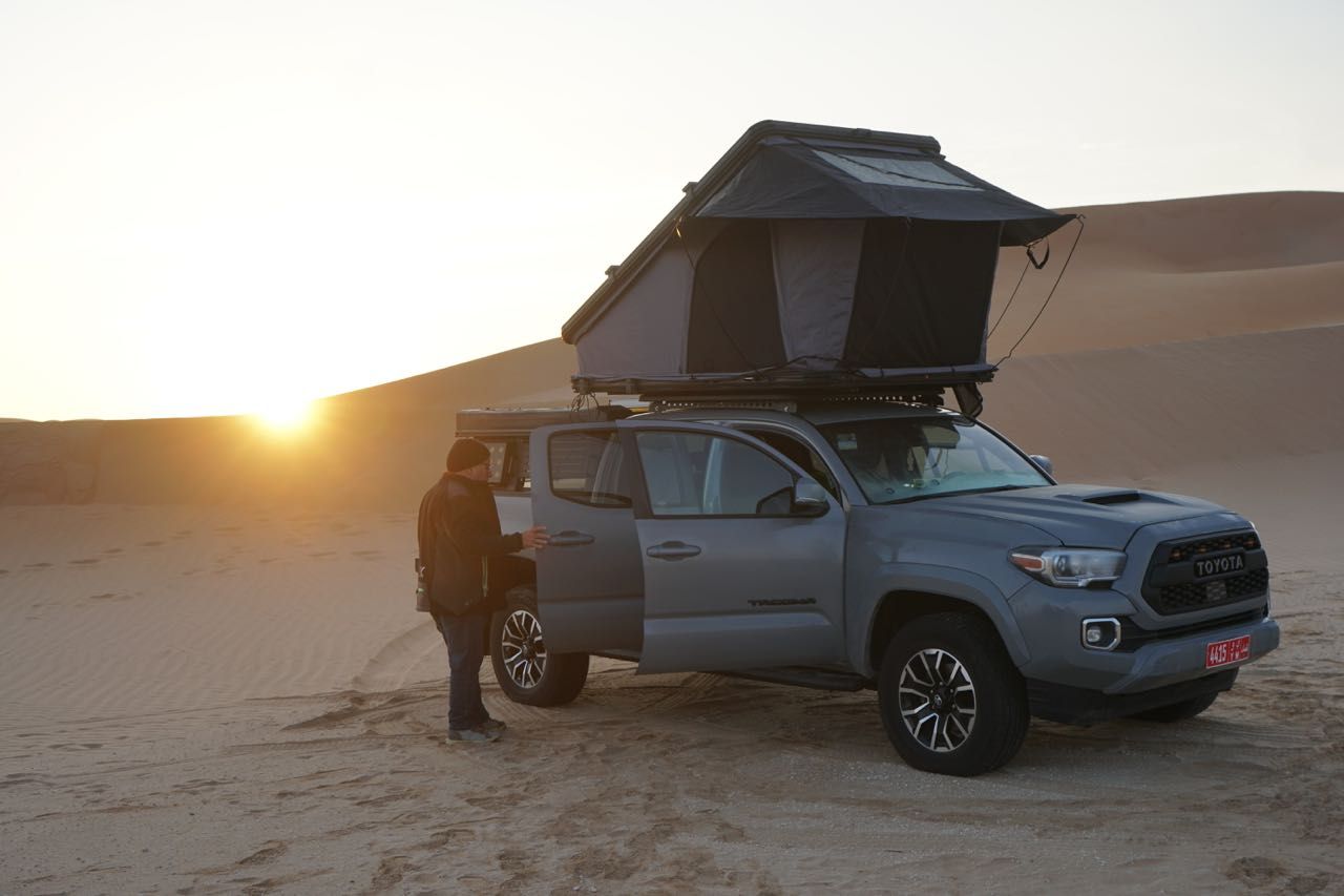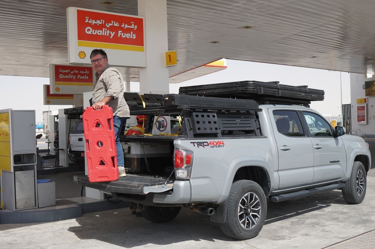 Mentre finiscono di prepararle, io e Pasquale, il compagno di viaggio, cominciamo ad esaminarle, considerando che sono modelli non disponibili per il mercato Italiano,controlliamo tutti i comandi e allestimenti, tutte le auto hanno montato sul tetto o sul portapacchi una tenda automatica che può accogliere comodamente due persone, hanno un frigo capiente, un inverter, doppia batteria, compressore, tanica sul tetto per l’acqua, taniche per la benzina, tavoli sedie e attrezzature per la gestione della cucina, in poche parole tutto quello che serve, controlliamo anche gli pneumatici che non abbiano crepe o rigonfiamenti, alla fine promosse, possiamo andare.