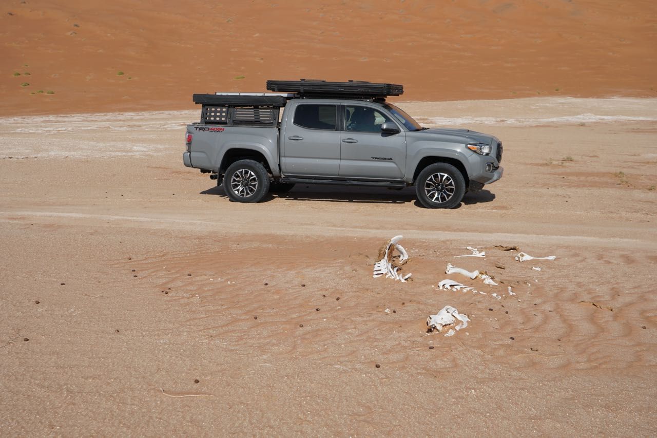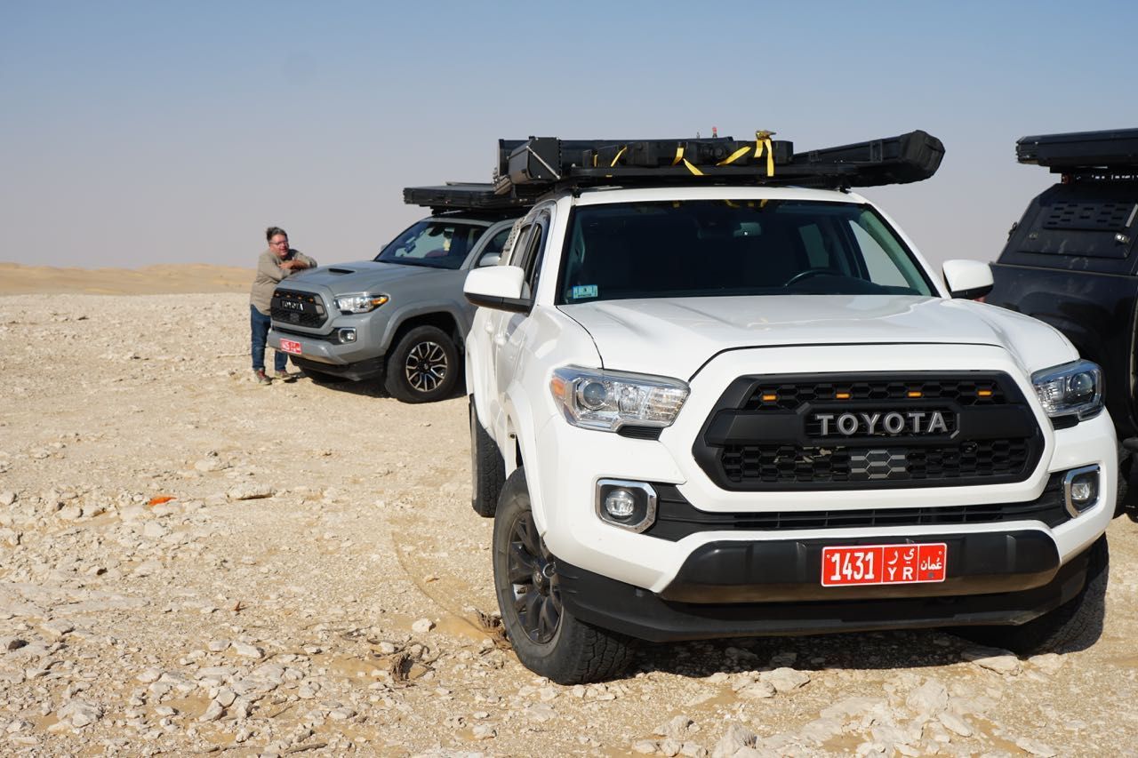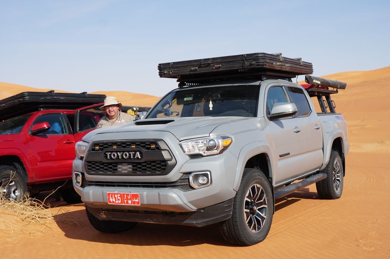 Il giorno dopo ci rechiamo dal noleggiatore che sta preparando le auto che utilizzeremo nel deserto, i Toyota Tacoma, una versione più evoluta del’Hilux, con la motorizzazione intermedia V6 a benzina con 278 cv, già questo mi fa sussultare di piacere, tutte automatiche, quasi nuove e attrezzatissime per un viaggio confortevole, in questi paesi il gasolio si usa prevalentemente per i trattori agricoli e autocarri.
