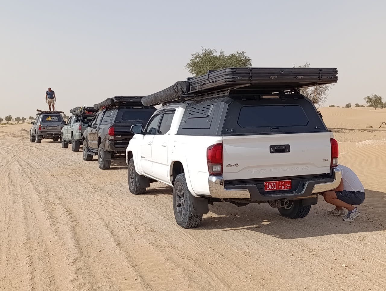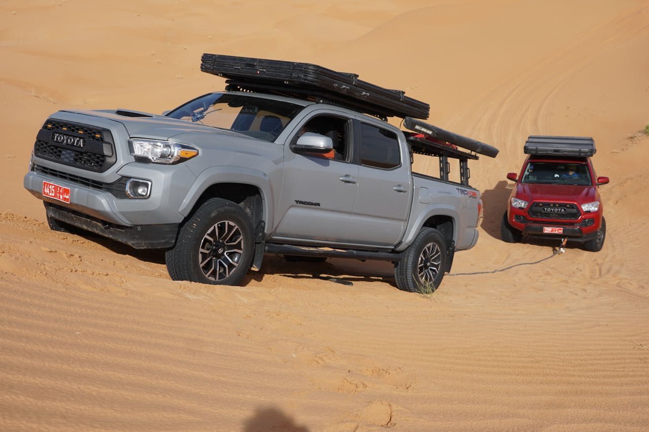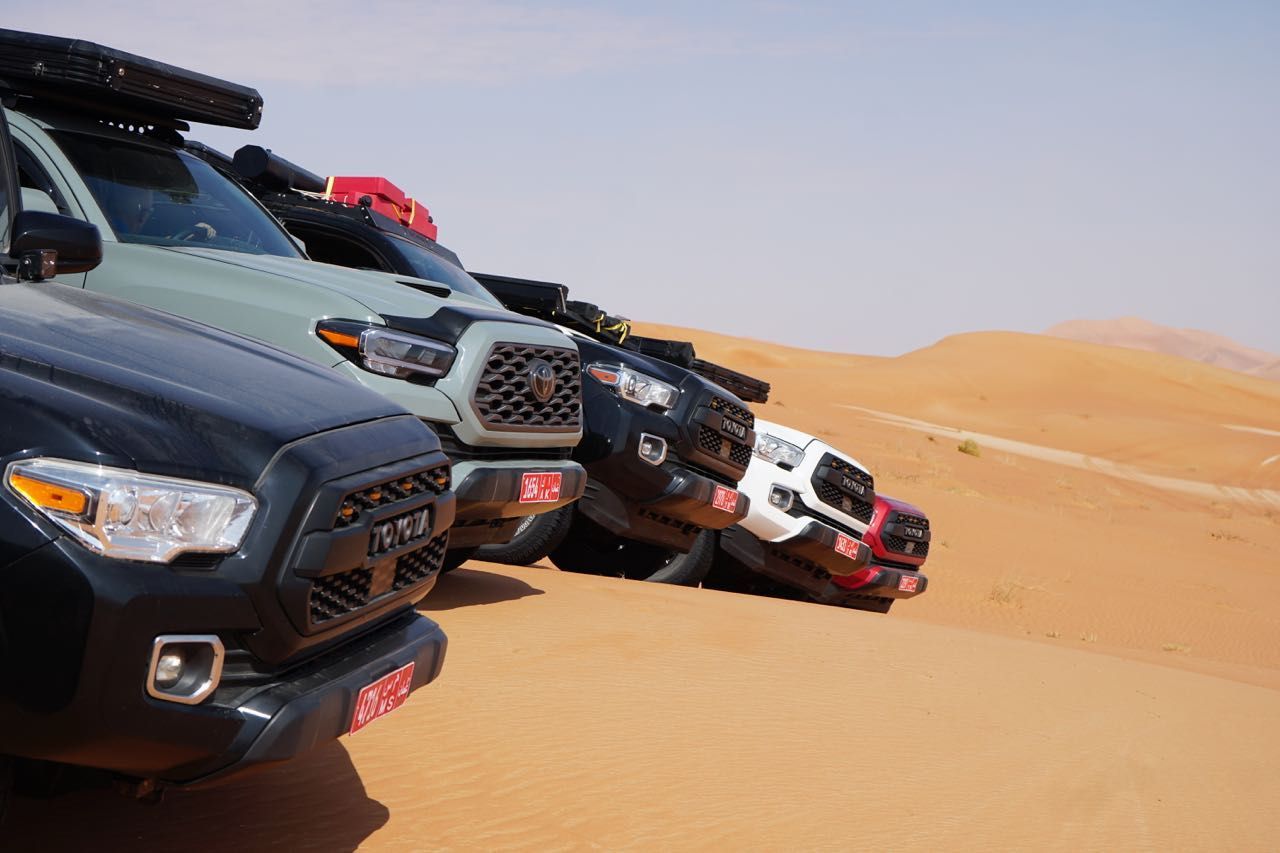 Il giorno dopo ci rechiamo dal noleggiatore che sta preparando le auto che utilizzeremo nel deserto, i Toyota Tacoma, una versione più evoluta del’Hilux, con la motorizzazione intermedia V6 a benzina con 278 cv, già questo mi fa sussultare di piacere, tutte automatiche, quasi nuove e attrezzatissime per un viaggio confortevole, in questi paesi il gasolio si usa prevalentemente per i trattori agricoli e autocarri.