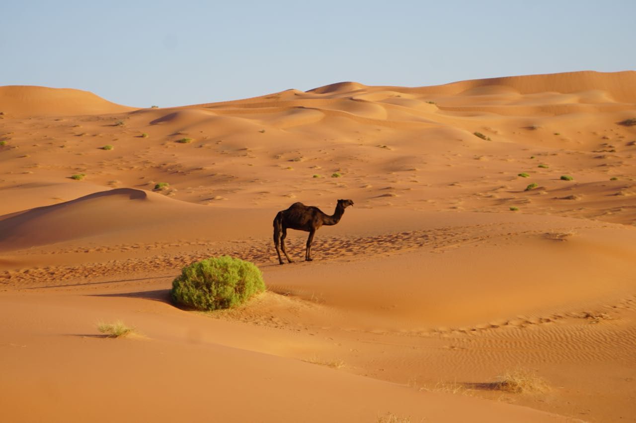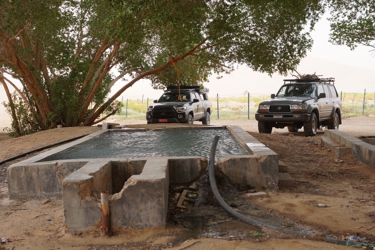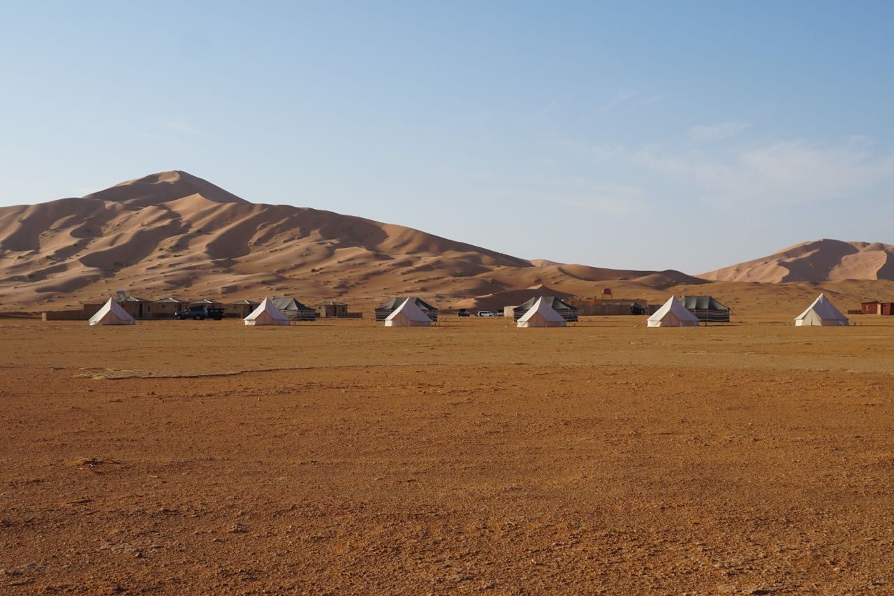 Al sorgere del sole ci adoperiamo per chiudere le tende e recuperare il materiale del campo che è volato, sedie, tavoli, masserizie, non riusciamo a trovare tutto, ma partiamo, di nuovo montagne di sabbia, radure colorate di bianco e un bellissimo sole ci illumina la giornata, vista le condizioni meteo chiaramente avverse e la notte appena passata decidiamo di dirigerci verso un accampamento per passare la notte in tranquillità senza l’incubo del vento,passiamo vicino ad una oasi con un presa d’acqua dove i pastori riempiono le cisterne per abbeverare in dromedari, un particolare curioso in mezzo al deserto ci sono i cassonetti per i rifiuti a 150km di pista dalla civiltà.