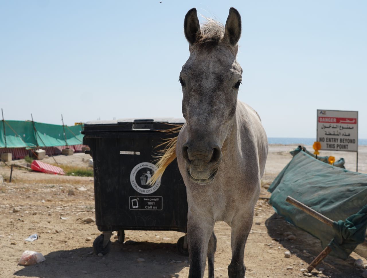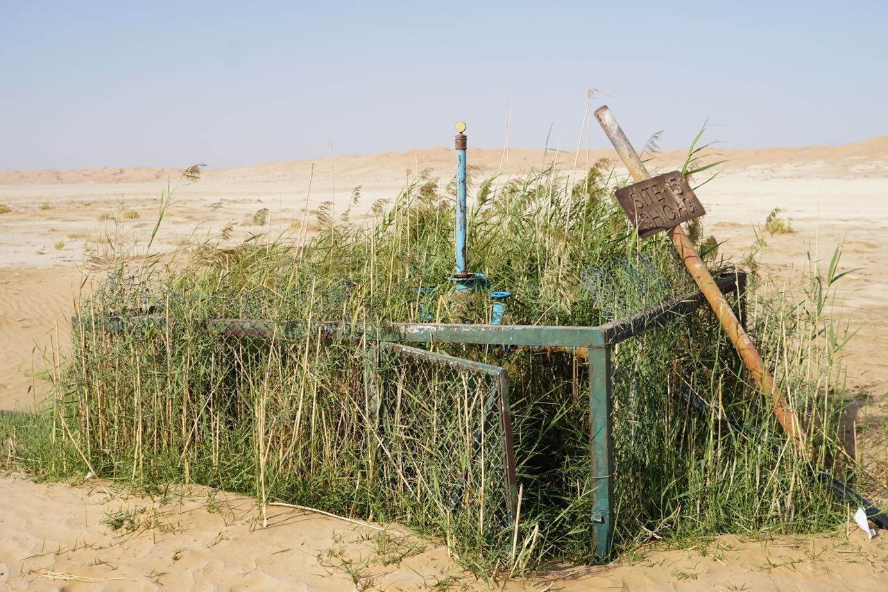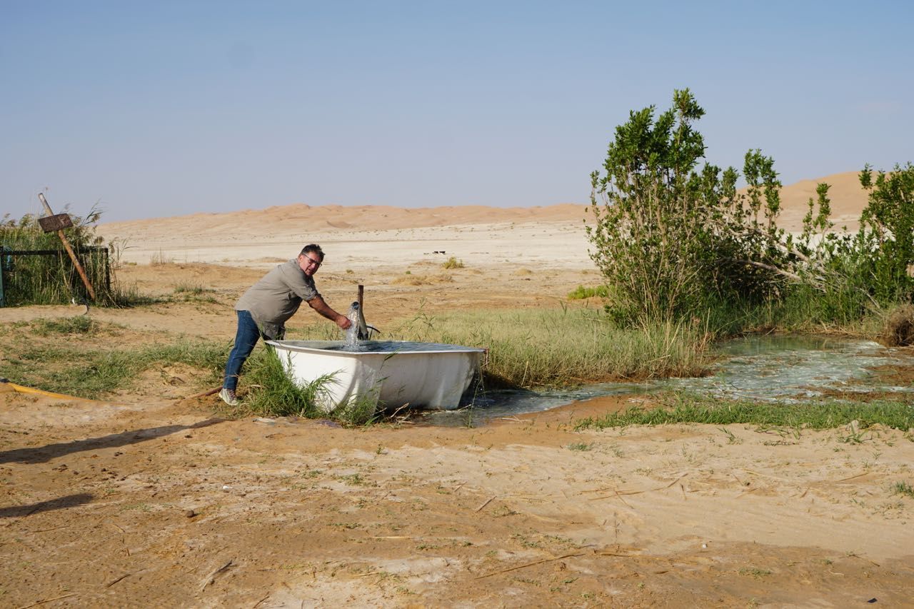 Al sorgere del sole ci adoperiamo per chiudere le tende e recuperare il materiale del campo che è volato, sedie, tavoli, masserizie, non riusciamo a trovare tutto, ma partiamo, di nuovo montagne di sabbia, radure colorate di bianco e un bellissimo sole ci illumina la giornata, vista le condizioni meteo chiaramente avverse e la notte appena passata decidiamo di dirigerci verso un accampamento per passare la notte in tranquillità senza l’incubo del vento,passiamo vicino ad una oasi con un presa d’acqua dove i pastori riempiono le cisterne per abbeverare in dromedari, un particolare curioso in mezzo al deserto ci sono i cassonetti per i rifiuti a 150km di pista dalla civiltà.